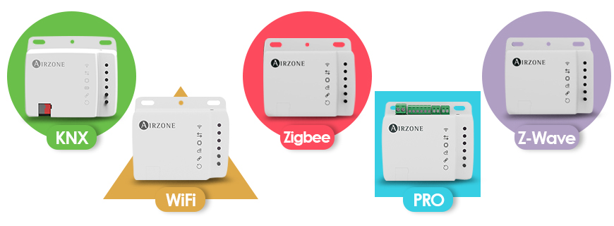 A spanyol Airzone cég általunk is hamarosan forgalmazott termékcsaládja 5 eszközből áll: KNX, WiFi, Zigbee, PRO és Z-Wave. 1977 óta fejlesztenek HVAC (fűtés, szellőztetés, klíma) vezérlő megoldásokat. Termékeik nemcsak a kényelmet növelik, hanem jelentősen hozzájárulnak az energiafogyasztás csökkentéséhez is. Az Airzone rendszerek képesek együttműködni egy épület más gépészeti eszközeivel, így mindig az aktuálisan rendelkezésre álló energiaforrások optimális kihasználásával biztosítják a kényelmet. Nem véletlen, hogy már 2005 óta a Daikin is az Airzone megoldásait használja.
